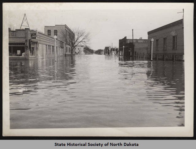 Mandan ND Business district at height of flood, March 1943.